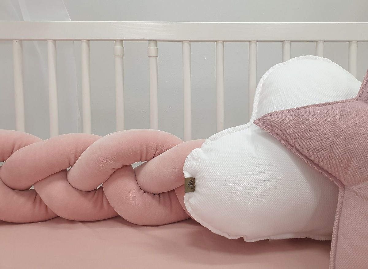 Il paracolpi intrecciato rosa antico è un elemento decorativo moderno e stiloso per ogni lettino per bambini. Garantisce sicurezza durante i movimenti del bambino nel lettino.