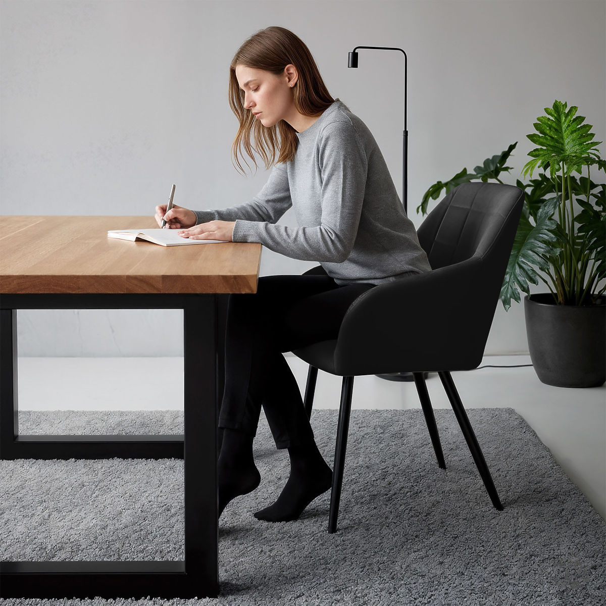 Le sedie imbottite combinano un aspetto estetico con il comfort d'uso e si adattano bene a diversi stili di interni. La loro forma universale le rende adatte per la sala da pranzo, il soggiorno o gli spazi ufficio. Sono disponibili in due varianti di materiale: in tessuto Lumos o in velluto.