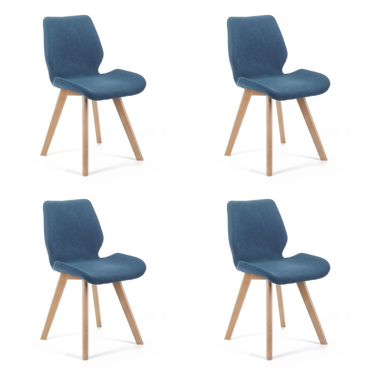 Elegante sedia di colore blu. Le gambe in legno conferiscono a questo prodotto modernità e allo stesso tempo stile. Grazie al rivestimento in tessuto, la sedia è molto bella e confortevole. È adatta per il soggiorno, l'ufficio, la camera da letto, la sala d'attesa o la reception. Le sedie sono vendute in set - 4 pezzi in un pacchetto.