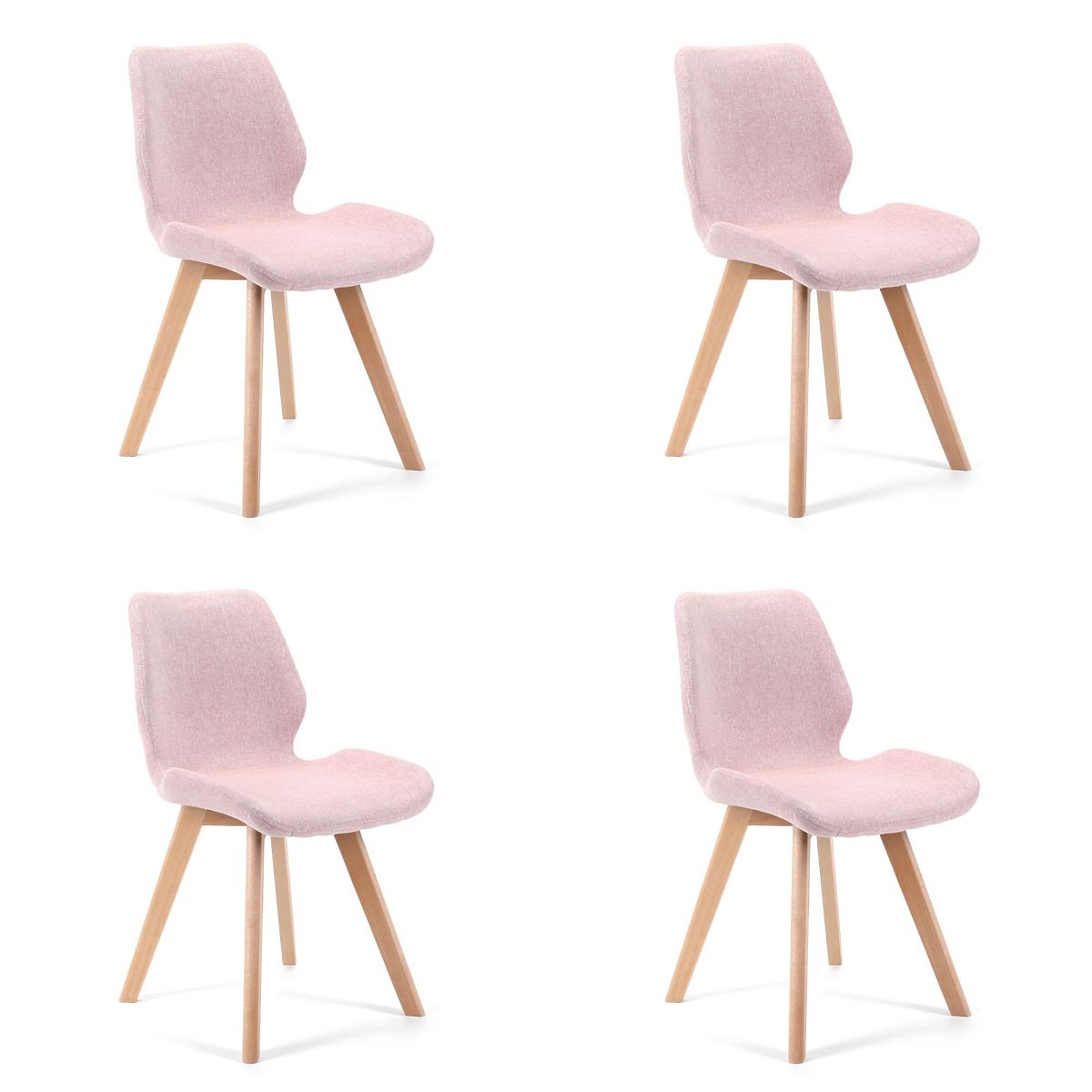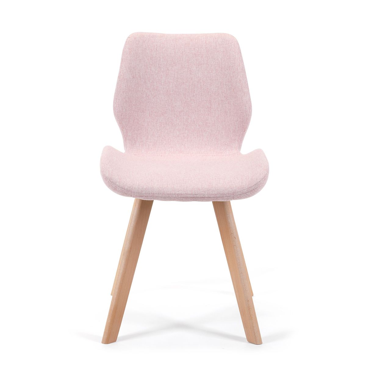 Sedia scandinava rosa con gambe in legno e rivestimento in tessuto. .. altro