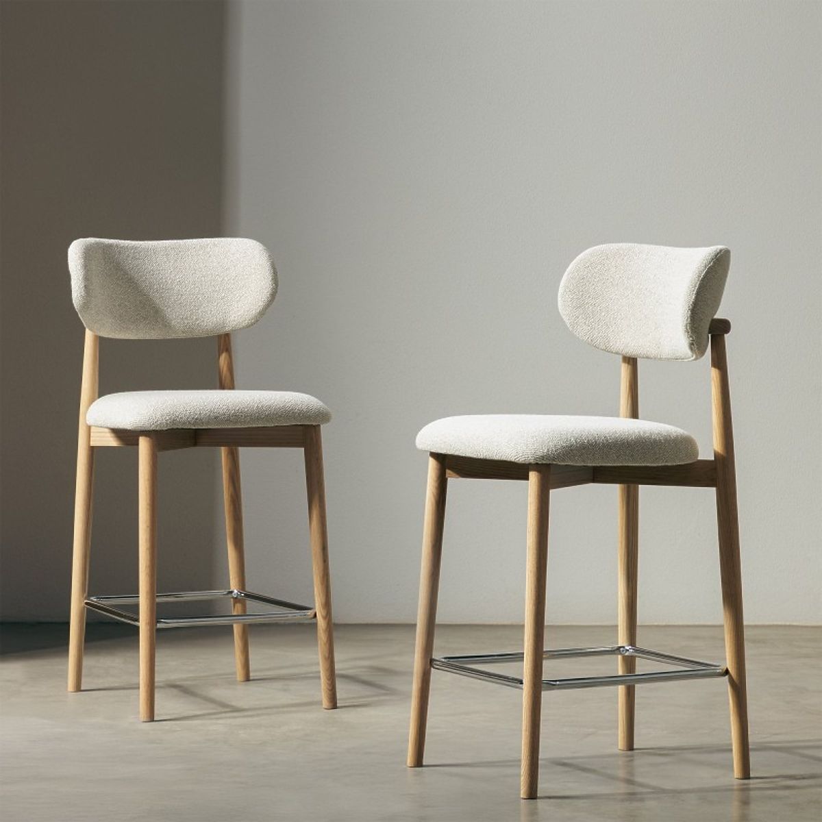Sgabello da bar Amalfi con rivestimento in tessuto crema e gambe in rovere. .. altro