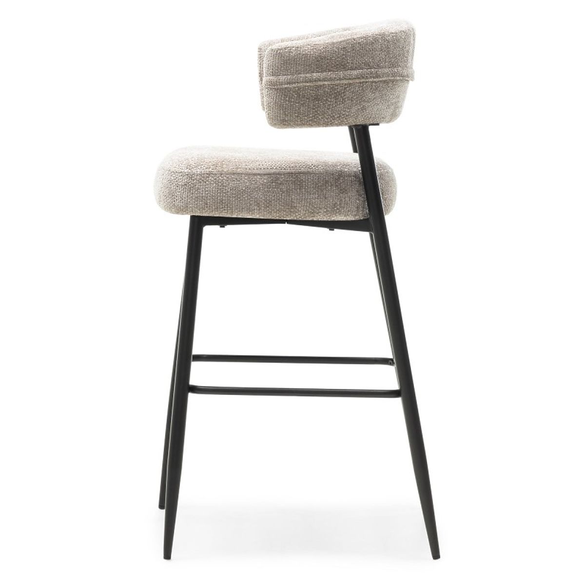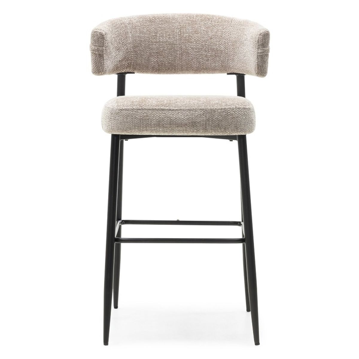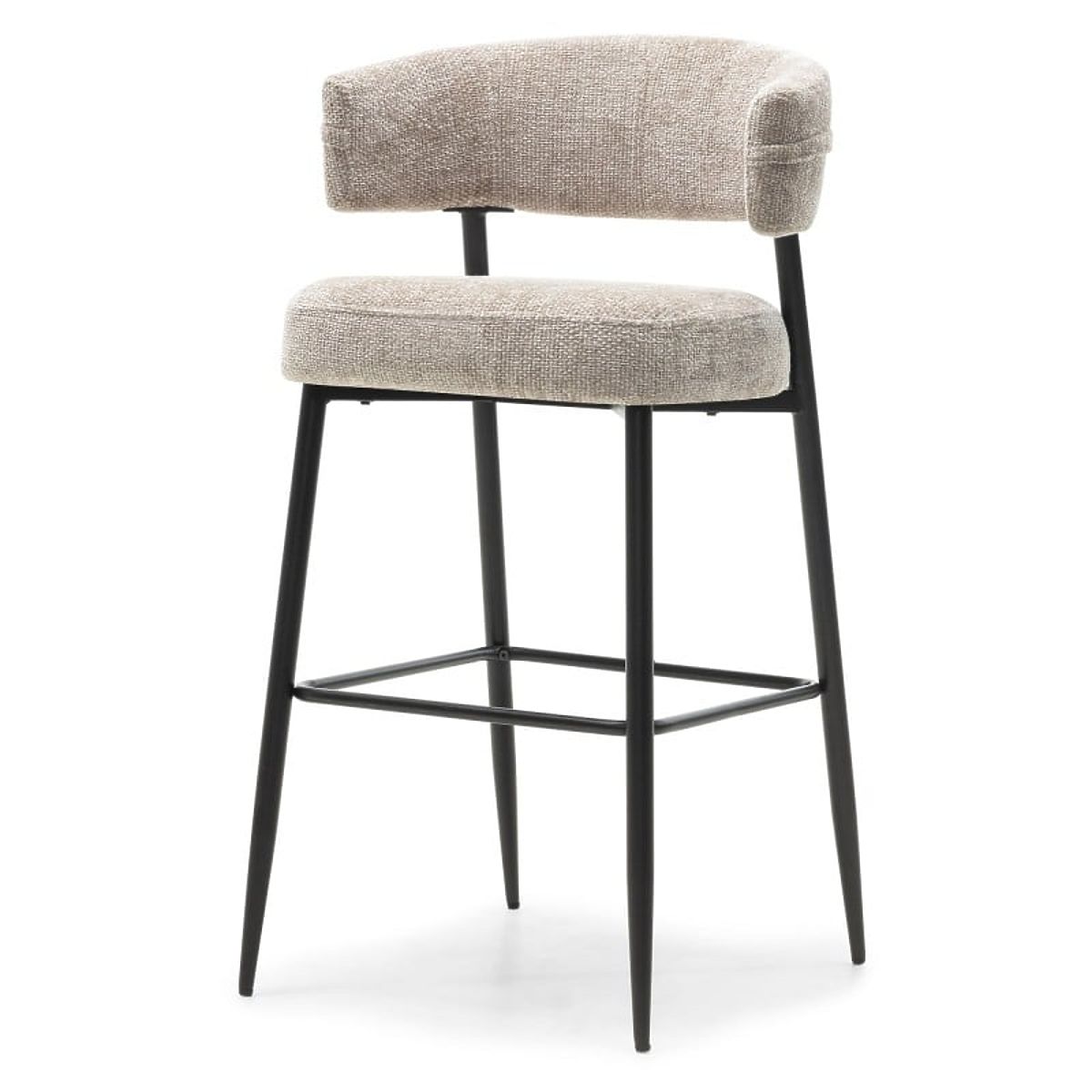 Lo sgabello da bar Rosario rappresenta eleganza e comfort in stile moderno. È dotato di uno schienale arrotondato e di una seduta imbottita in schiuma, garantendo comfort anche durante sedute prolungate. Il rivestimento in tessuto morbido di colore beige dona un tocco accogliente all'interno.