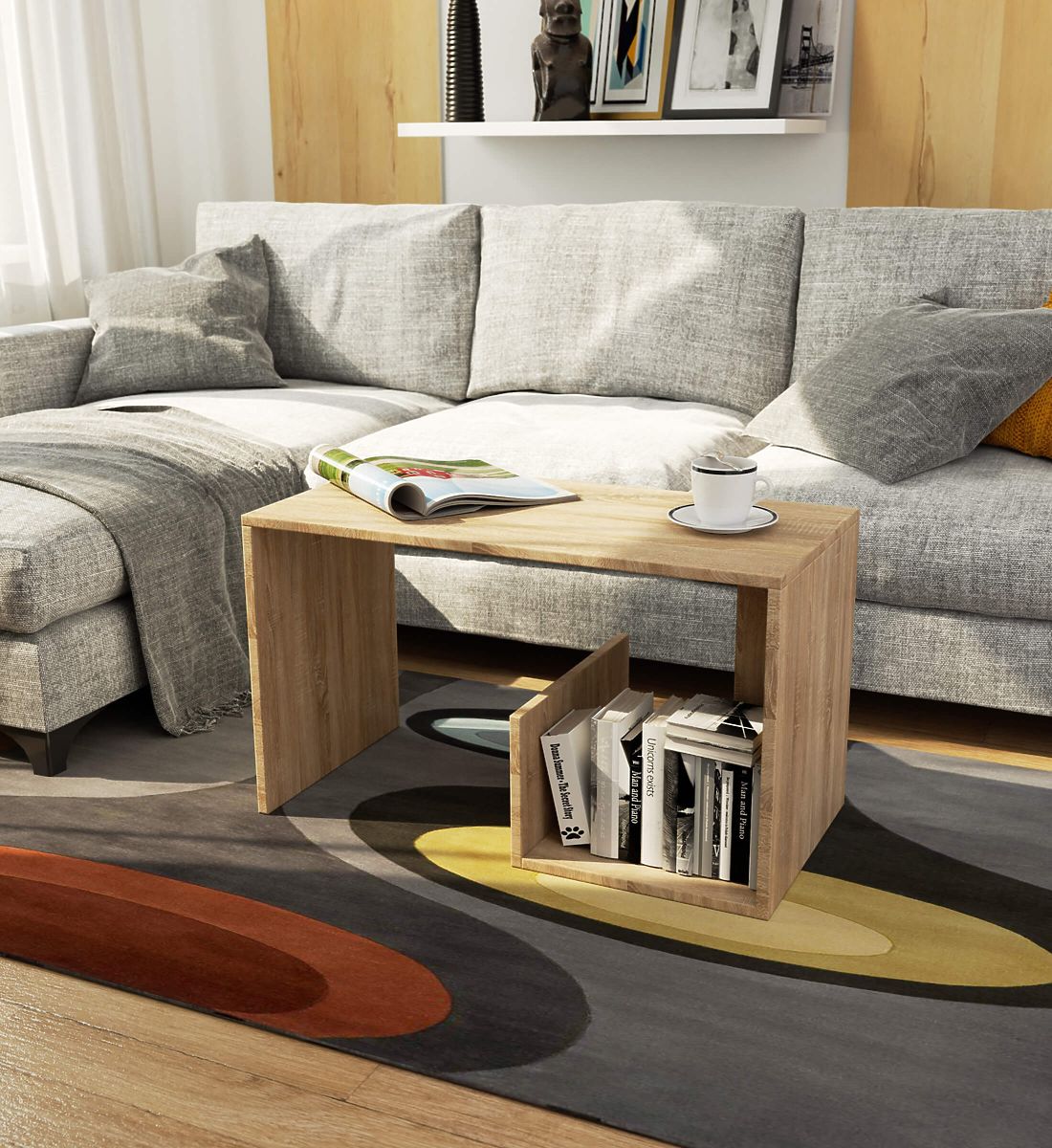 TAVOLINO DA CAFFÈ PAUL COLORE ROVERE SONOMA Realizzato in pannello laminato da 16 mm resistente all'abrasione.
