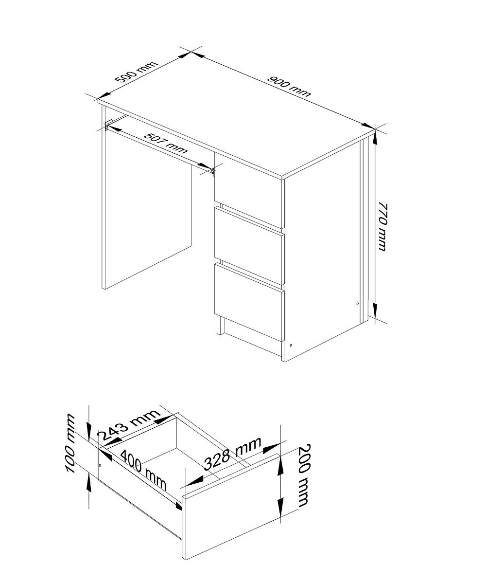 La scrivania in pannello laminato è un prodotto che si distingue per l'elevata resistenza all'abrasione, garantendo così una lunga durata in perfette condizioni. Il suo aspetto universale assicura che si adatti perfettamente a qualsiasi stanza. Il mobile è dotato di un piano, un ripiano estraibile e tre ampi cassetti che possono essere organizzati secondo le esigenze individuali.