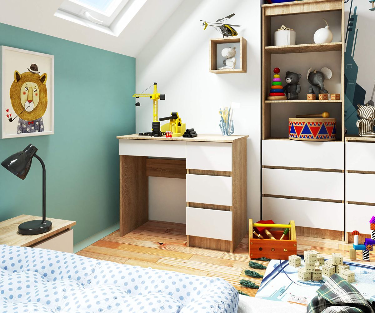 Banaby.it » Mobili per bambini / Tavoli / Tavoli per scrivere / SCRIVANIA A-7 CLP SONOMA / BIANCO PK DESTRA