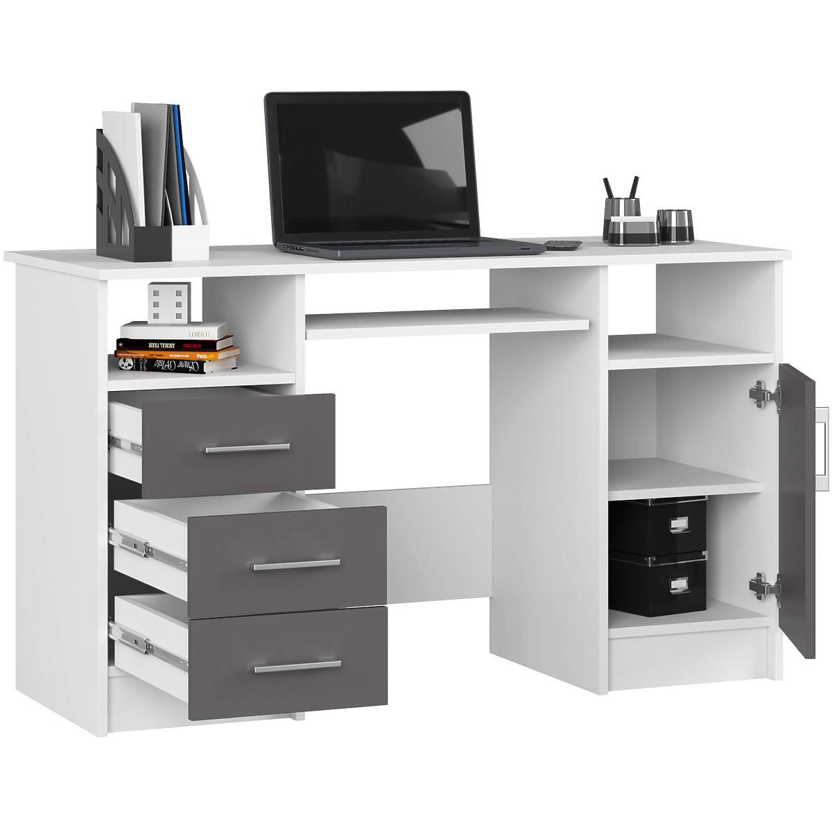 Scrivania ANA 124 cm bianco e grigio grafite con ripiano tastiera estraibile. .. altro
