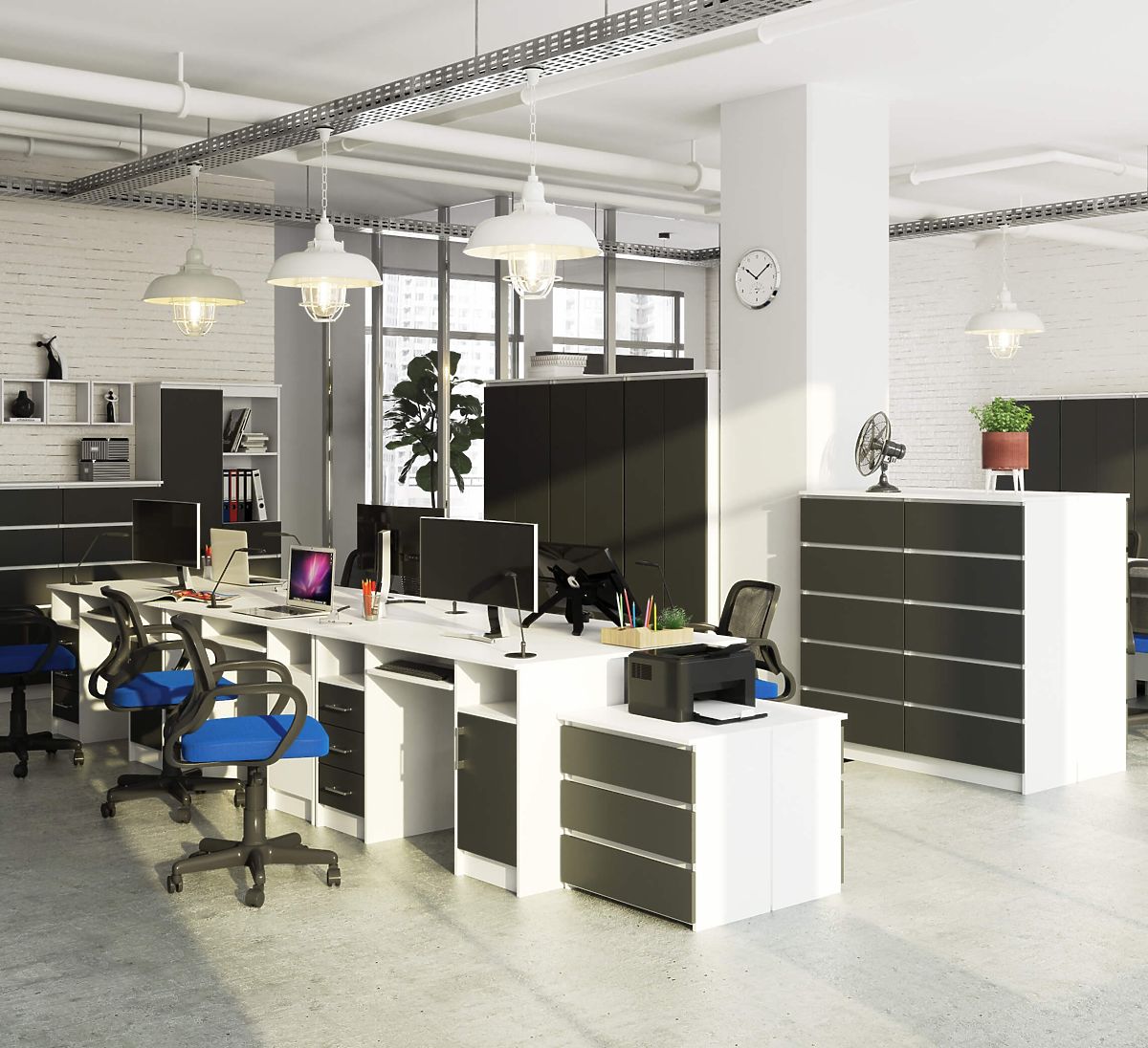 La scrivania per computer ANA 124 cm, grazie alla classica combinazione di colori bianco e grigio grafite, si adatta facilmente a qualsiasi interno. È stata progettata tenendo conto degli spazi ufficio e degli studi. È adatta anche per la stanza di un adolescente. Sul piano della scrivania c'è molto spazio: puoi posizionare un monitor e altri oggetti di lavoro necessari secondo le tue esigenze. Per la tastiera c'è un ripiano estraibile separato. La scrivania offre un'ampia quantità di spazio per qualsiasi disposizione: due nicchie, tre cassetti e un armadietto con ripiano. L'intera struttura è realizzata in pannello laminato, facile da mantenere e resistente all'abrasione. La scrivania ANA è eleganza, funzionalità e solidità in uno.