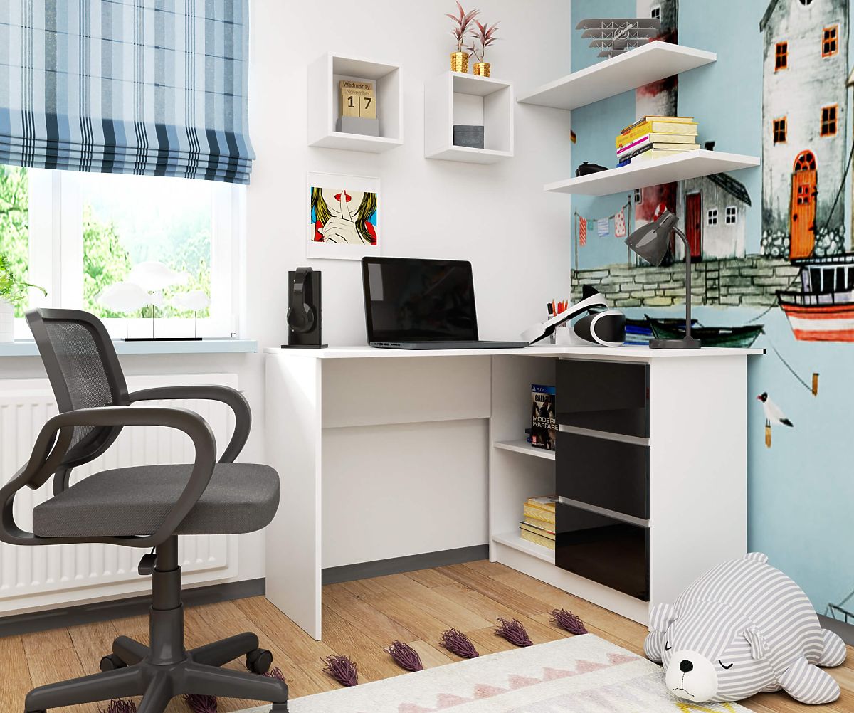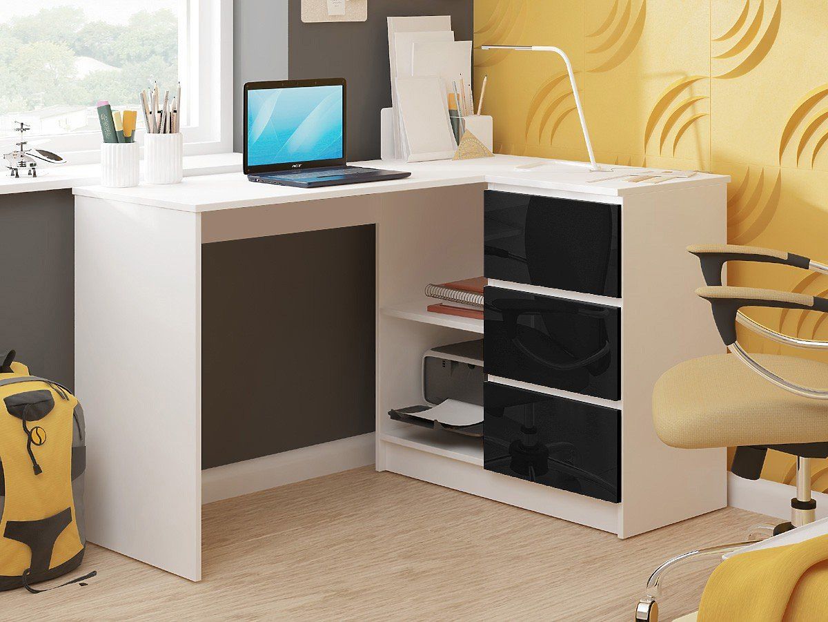 Banaby.it » Mobili per bambini / Tavoli / Tavoli per scrivere / SCRIVANIA ANGOLARE B16 124 cm DESTRA 3 CASSETTI PK BIANCO / NERO LUCIDO