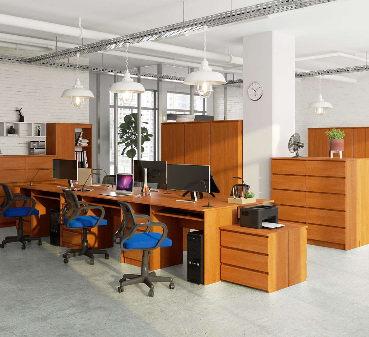 Scrivania in pannello laminato di spessore 16 mm resistente all'abrasione.
