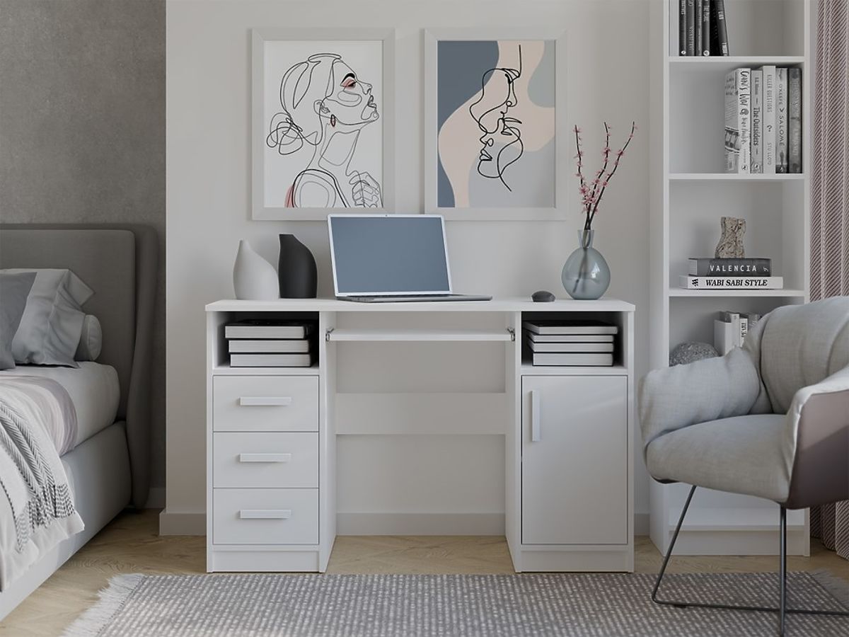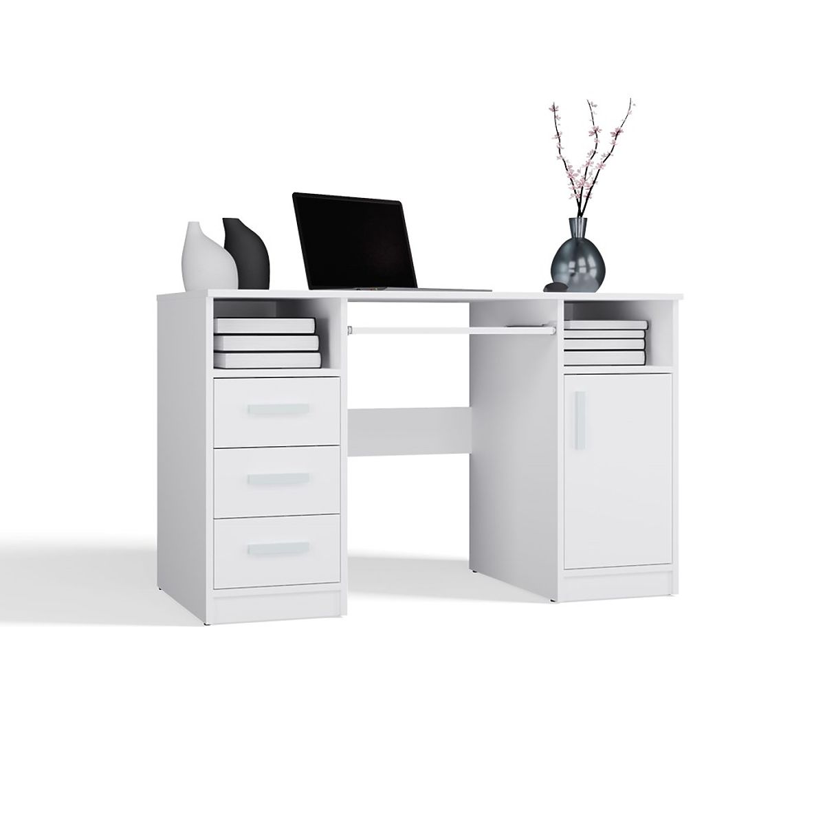SCRIVANIA DELTA BIANCA 120 cm 3 Cassetti Armadietto Ripiano per Ufficio Stanza per Laptop