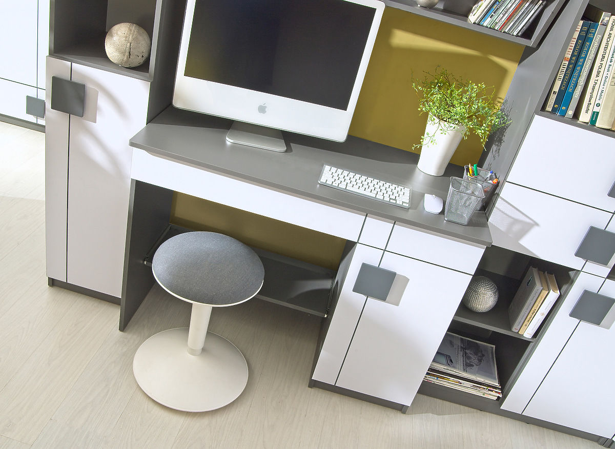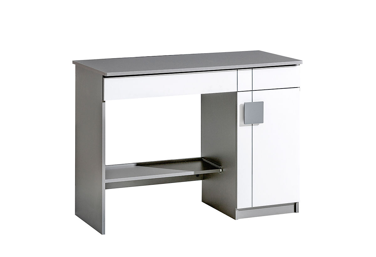 La moderna scrivania Gumi in laminato è adatta per la cameretta dei bambini, sia per ragazzi che per ragazze. La combinazione di colori bianco e grigio antracite è moderna. Sotto il piano superiore della scrivania si trova un cassetto allungato.