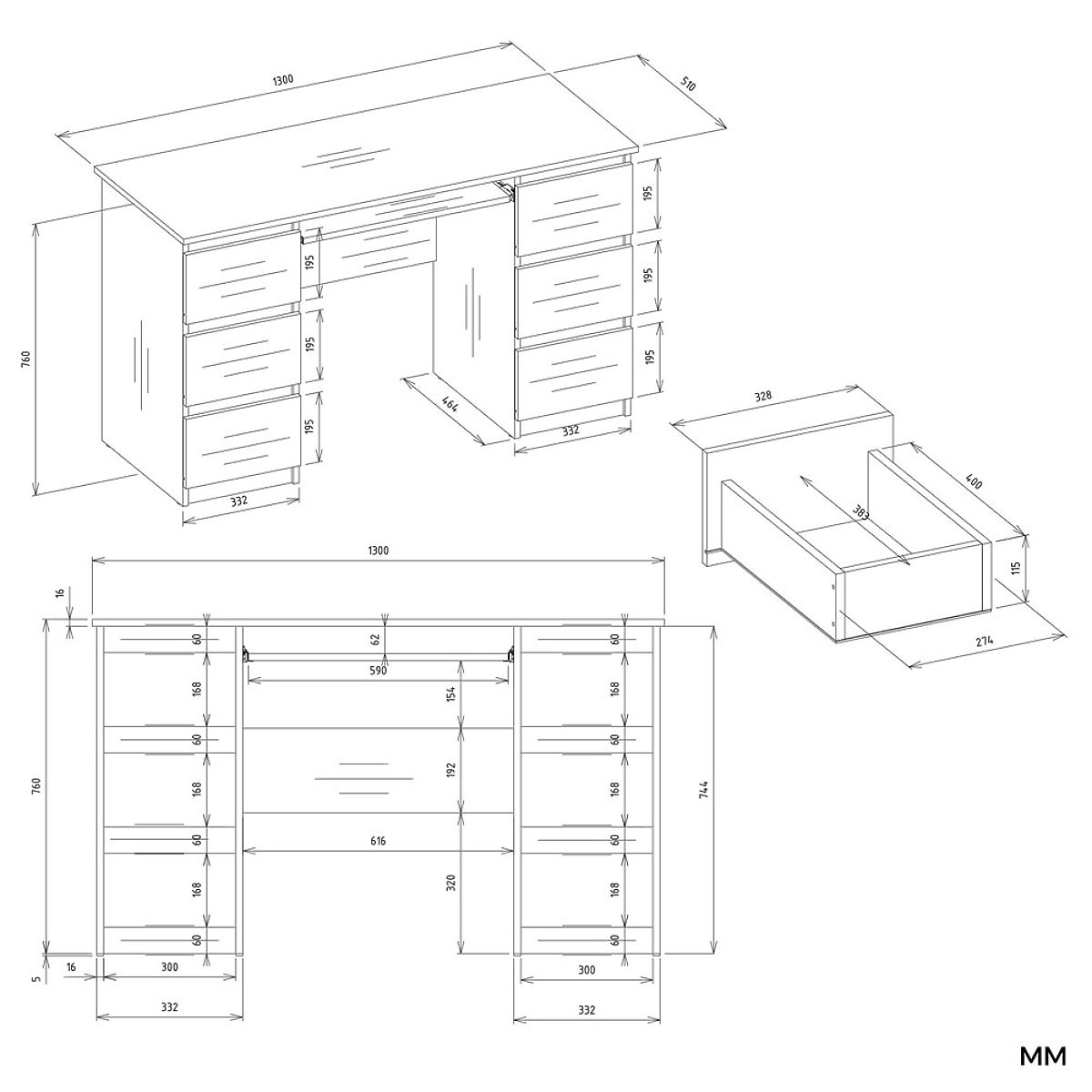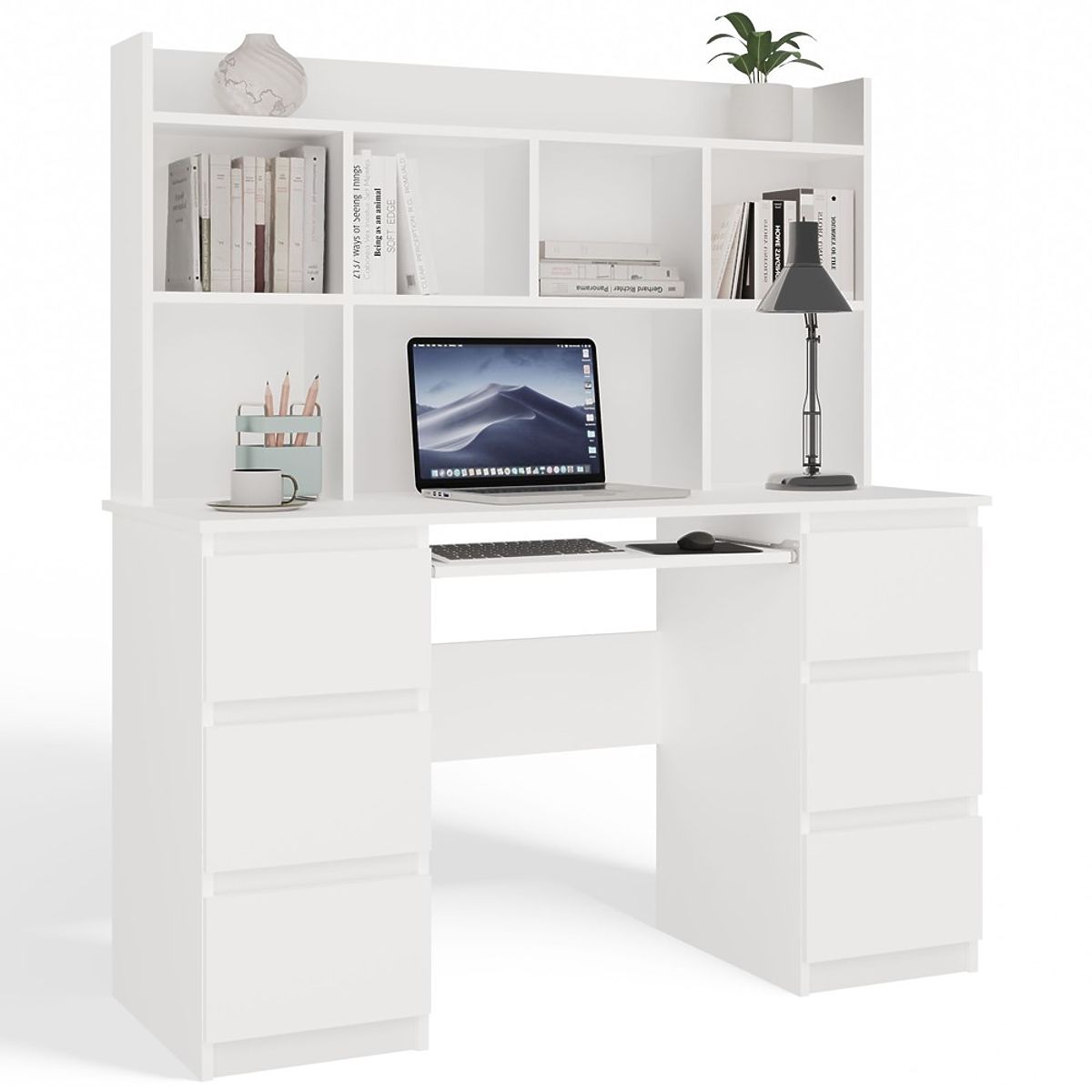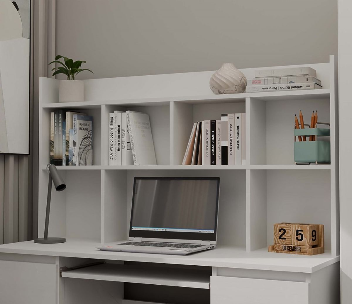 Scrivania bianca KUBA con sopralzo e 6 cassetti per organizzare lo spazio. .. altro