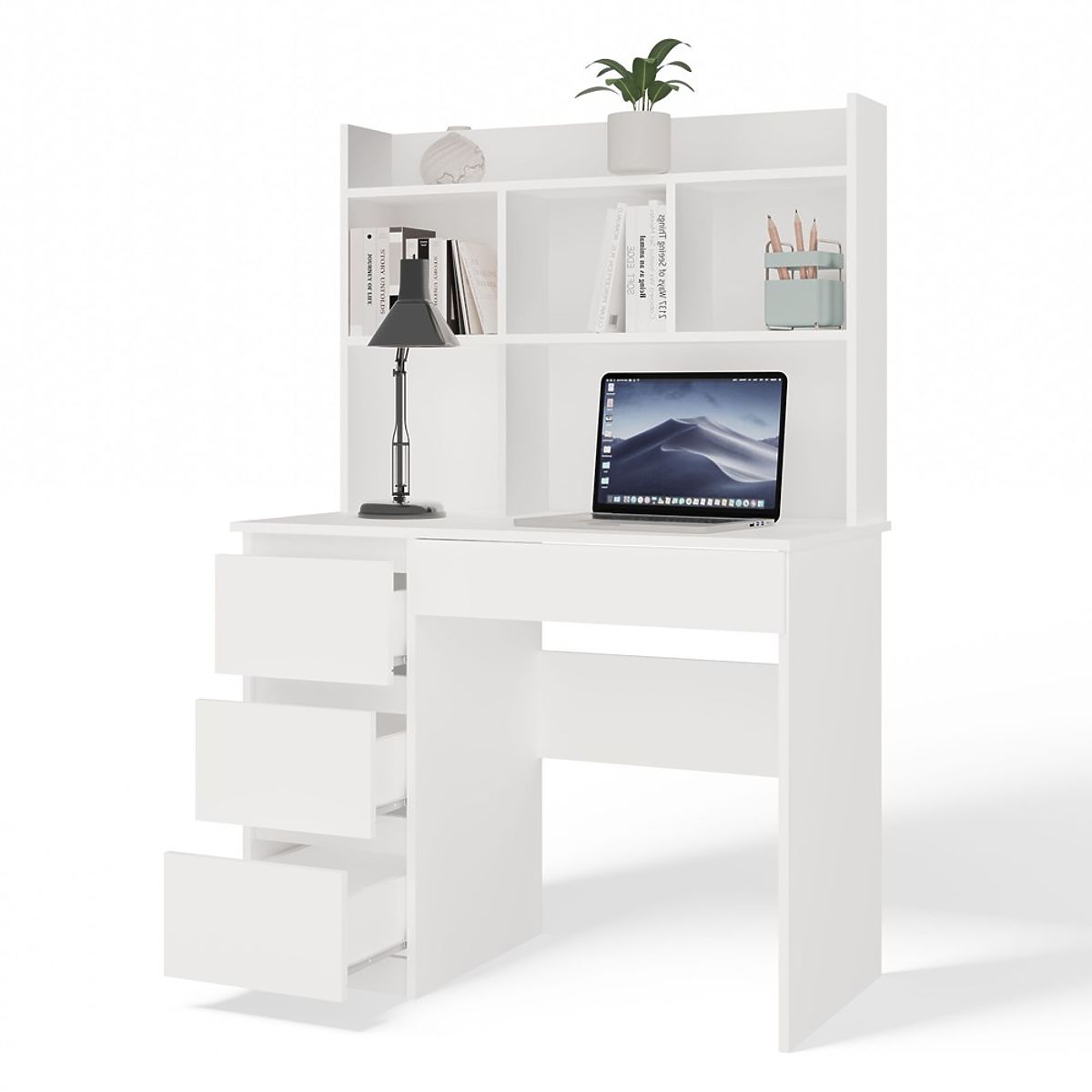 Banaby.it » Mobili per bambini / Tavoli / Tavoli per scrivere / Scrivania MIJAS Sinistra con Sopralzo Bianco Opaco 4 Cassetti 4 Ripiani per Ufficio e Camera