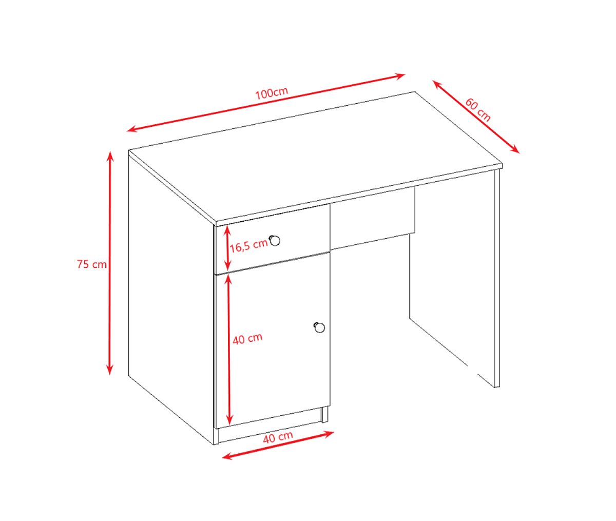 La scrivania include 2 spazi di archiviazione sotto forma di un cassetto e un armadietto.