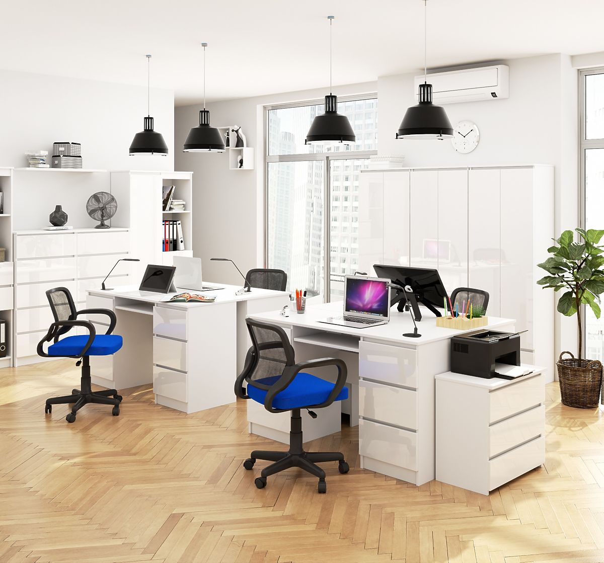 Banaby.it » Mobili per bambini / Tavoli / Tavoli per scrivere / SCRIVANIA PER COMPUTER A-11 135 cm 6 CASSETTI PK BIANCO / LUCIDO BIANCO