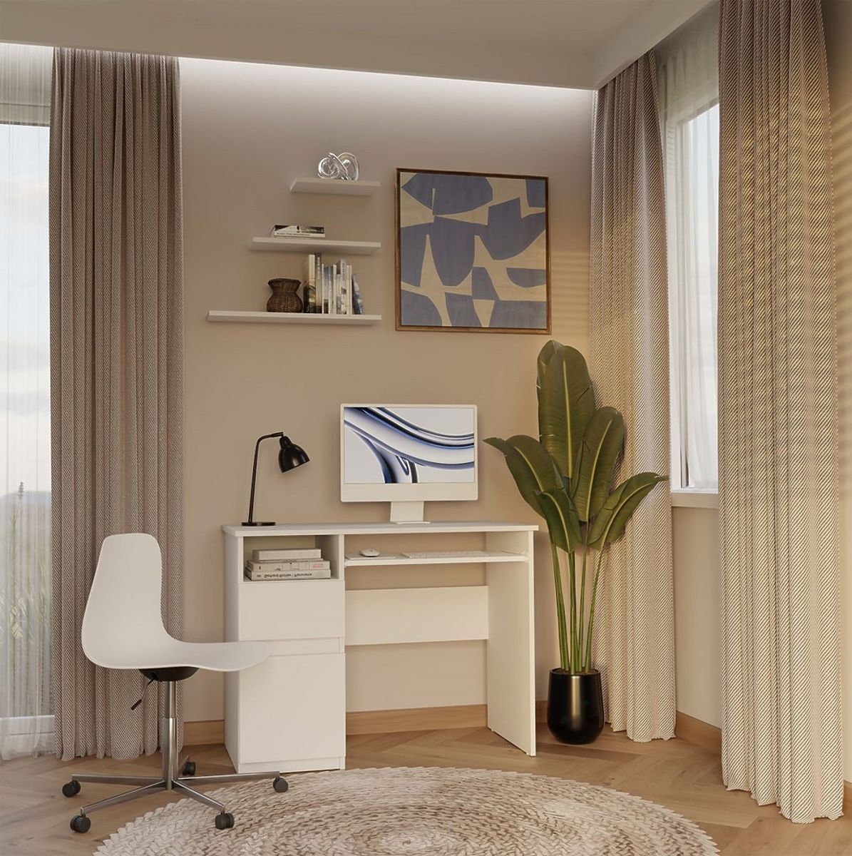Grazie alla sua struttura pratica e all'aspetto elegante, la scrivania offre una base eccellente per il lavoro quotidiano. È adatta sia per uffici spaziosi che per stanze più piccole dove l'ottimizzazione dello spazio è importante.