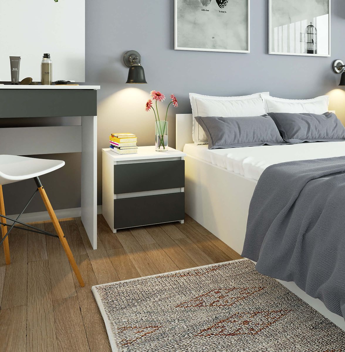 I comodini sono un tipo di arredamento popolare che viene posizionato accanto al letto. Sulla sua superficie è possibile posizionare una lampada, mentre nei cassetti - oggetti importanti che migliorano la qualità del riposo e del sonno. Nella nostra offerta è disponibile il comodino bianco CL2 40 cm con frontali dei cassetti in colore grafite grigio. Appare elegante e moderno, ed è allo stesso tempo funzionale. Si adatta perfettamente a qualsiasi camera da letto e stanza per giovani.