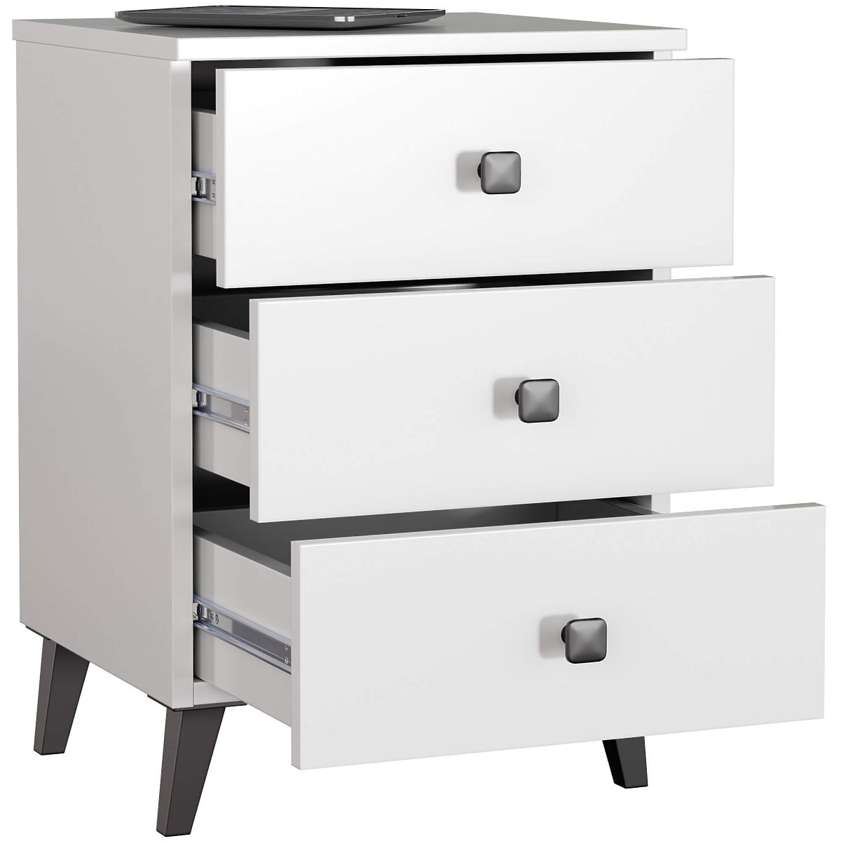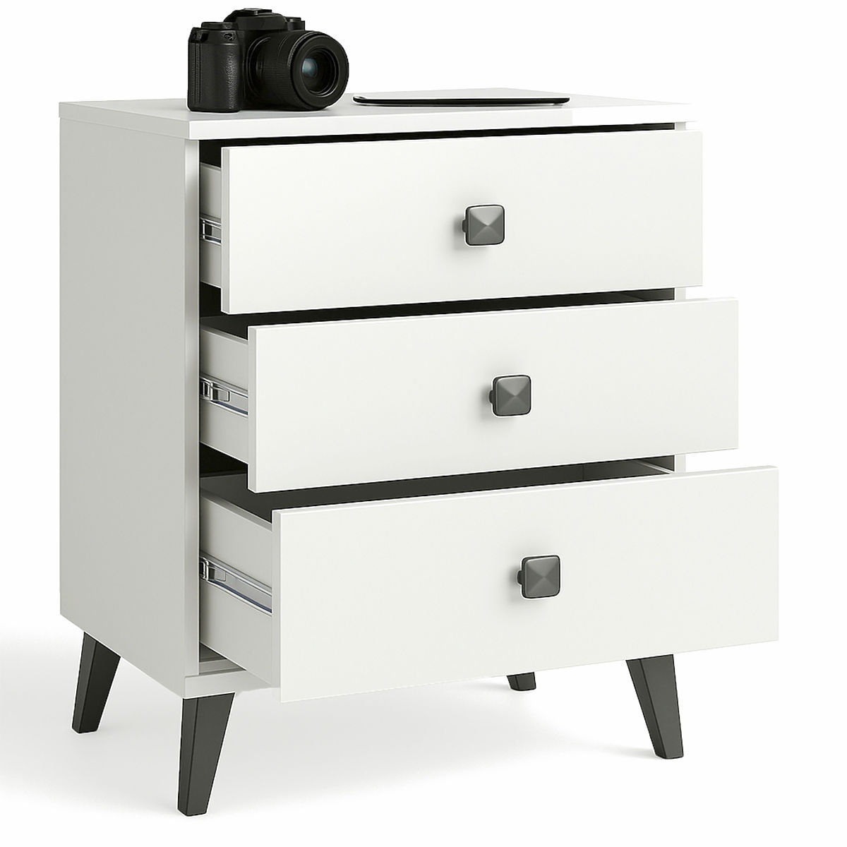 Comodino MOBI K03 con 3 cassetti, bianco e nero, resistente e moderno. .. altro