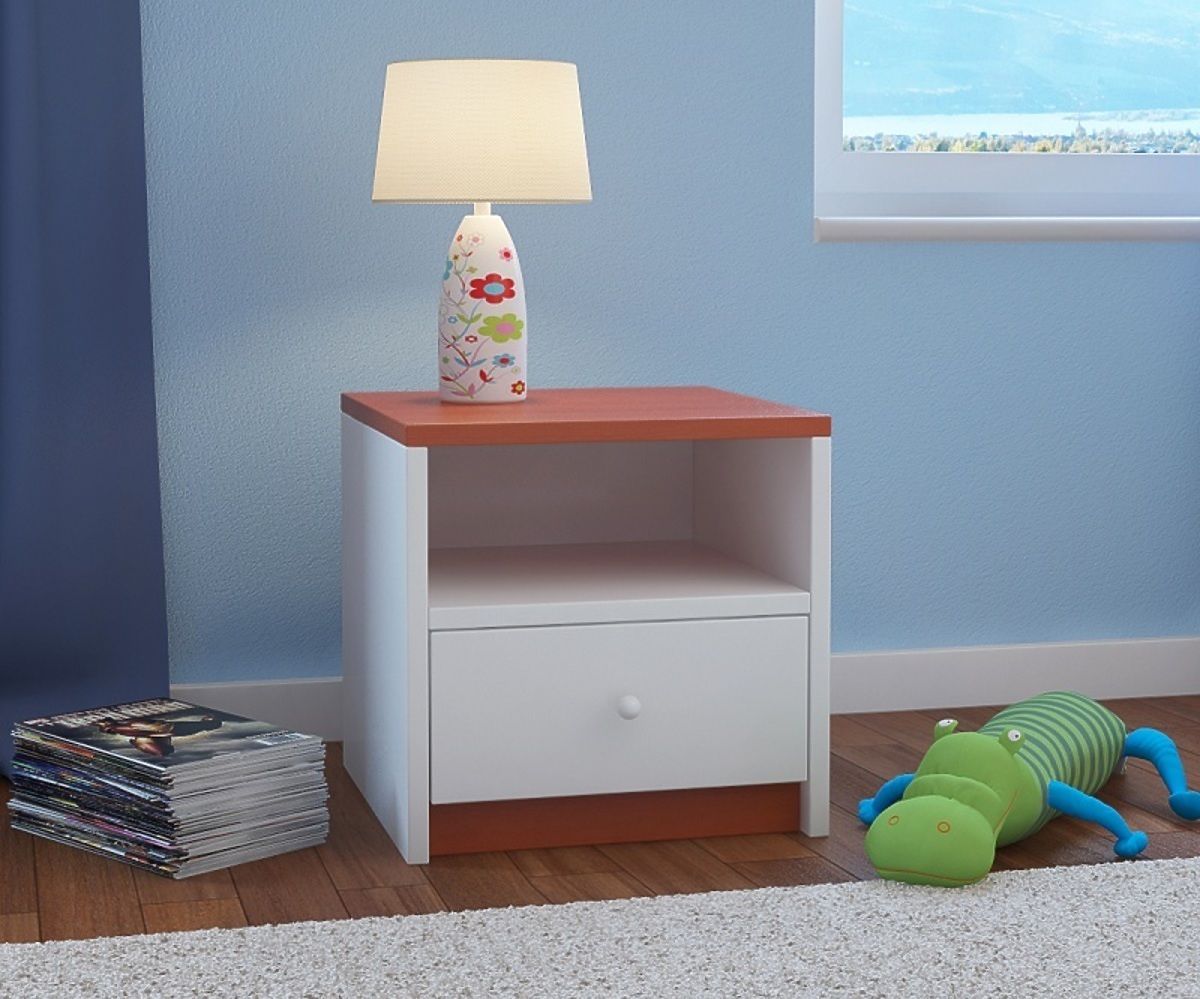I vaše dítě v pokoji ocení dětský noční stolek z kolekce Ourbaby. Jedná se o odstín calvados, který je populární záležitostí i v jiných místnostech v domě. Jelikož je kromě oranžovo - hnědé desky jinak bílý, hodí se k dětem do pokoje, ať ho obývá děvče nebo chlapec. Parametry nočního stolku: - 40x30x40 cm Rozměry šuplíku: - 37x16 cm