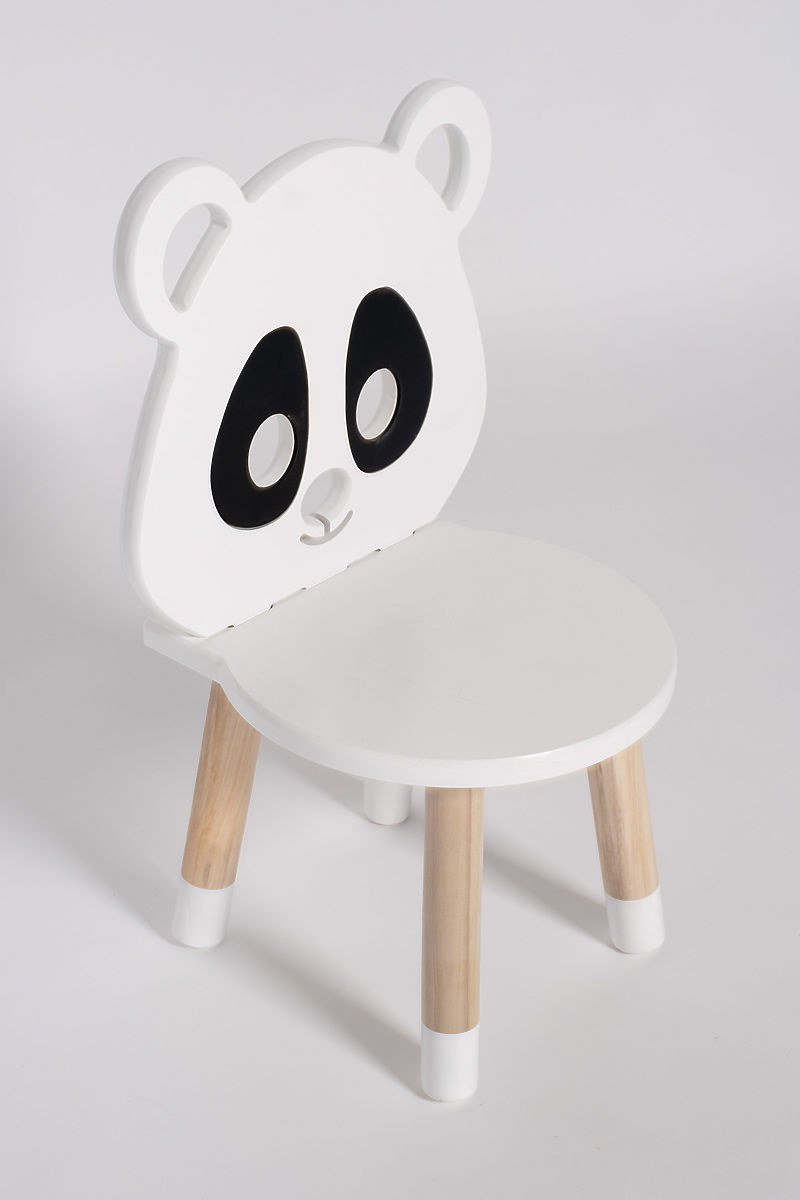 Sedia in legno a forma di panda con bordi arrotondati per la sicurezza dei bambini. .. altro