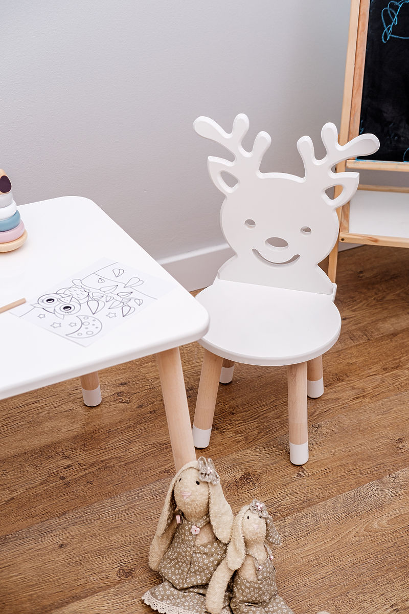 Bellissimo set in legno di tavolino e sedie a forma di cervo, che i vostri bambini adoreranno sicuramente. Questo set originale creerà un angolo accogliente per dipingere, leggere o fare uno spuntino.