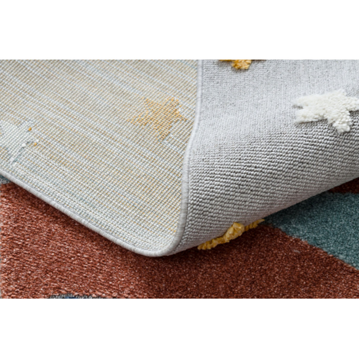 Il tappeto ha una superficie strutturale con frange, che stimola il tatto e la percezione visiva e supporta la creatività e la curiosità dei bambini. Grazie al filato di poliestere di qualità, il tappeto è morbido, leggero e facile da mantenere. Lo spessore del tappeto varia tra 8 mm e 16 mm, offrendo comfort sia durante il gioco che il riposo. Il peso dipende dal motivo e varia tra 2,0–2,50 kg/m².
