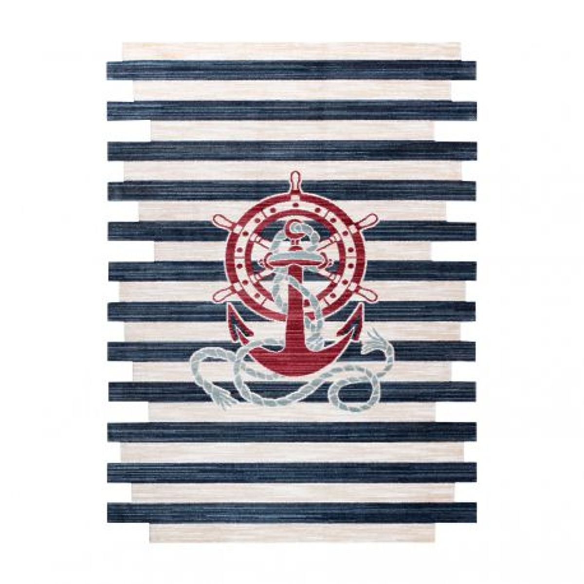 Aggiungi uno stile unico alla stanza dei bambini con il moderno tappeto TOYS 75324 KOTVA dalla forma irregolare. La combinazione di colori crema, turchese e blu scuro crea un piacevole motivo nautico che delizierà sia i bambini piccoli che quelli più grandi. Il tappeto è morbido, piacevole al tatto e offre comfort durante il gioco. Completa perfettamente l'arredamento della stanza dei bambini, dell'angolo giochi o dell'asilo.
