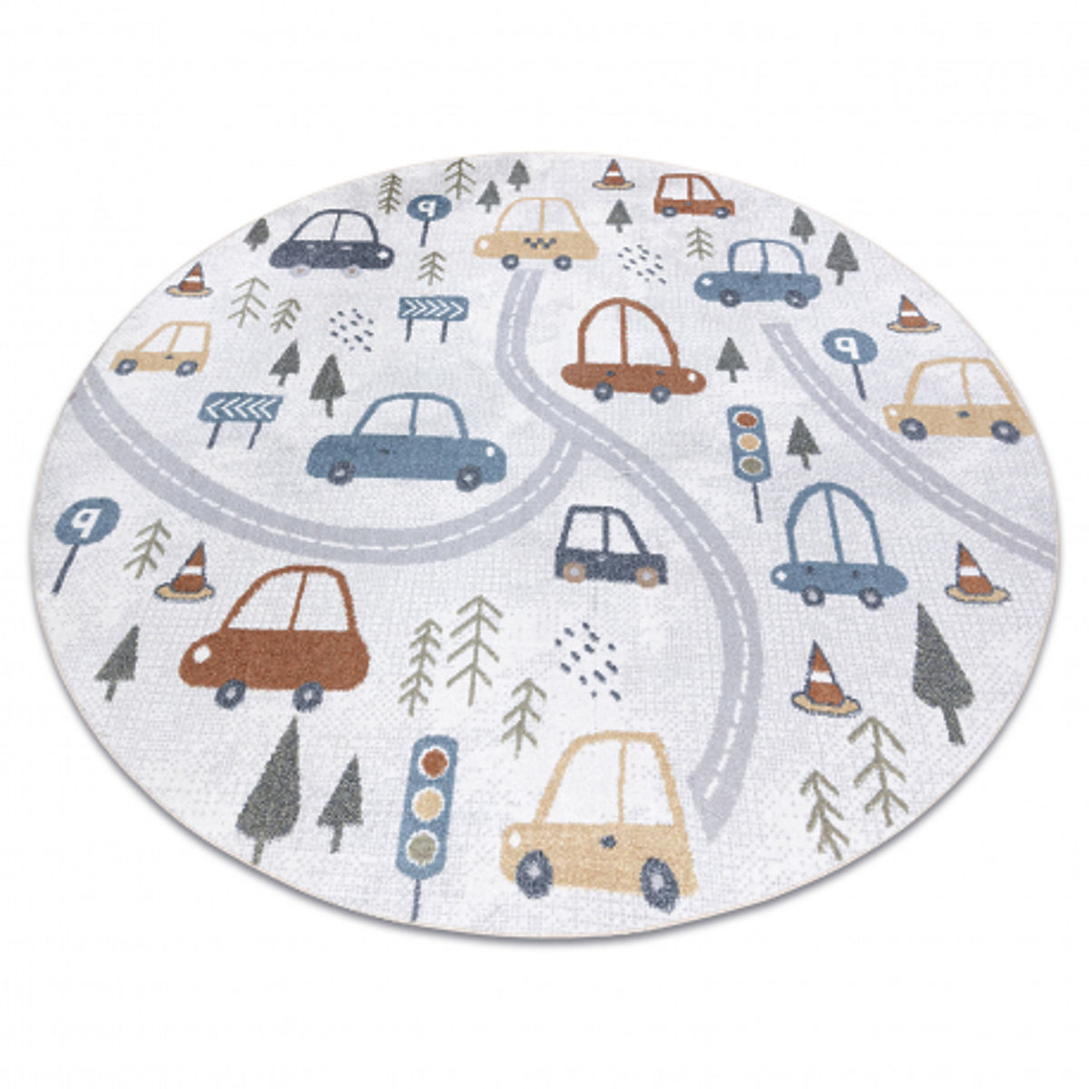 Tappeto rotondo per bambini con motivo di auto e strade. .. altro