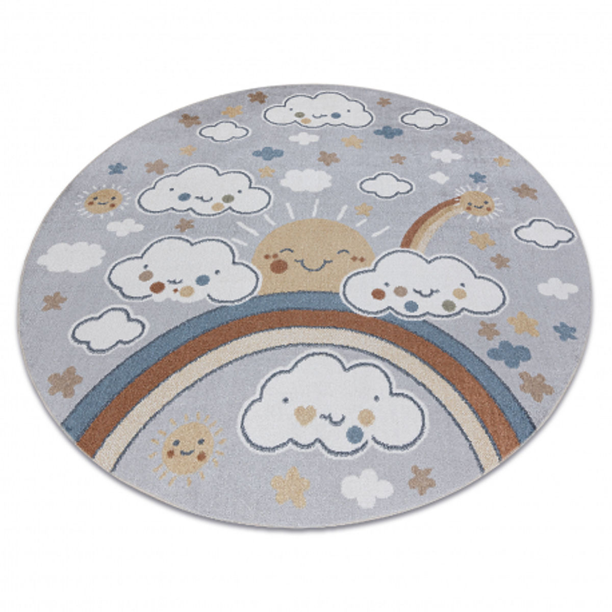 Il tappeto rotondo BONO 8437 Nuvole e cielo porta delicatezza, leggerezza e armonia negli interni. Il colore grigio chiaro combinato con dettagli crema crea un'impressione molto rilassante e si integra facilmente in stanze moderne, specialmente in quelle per bambini o zone relax.