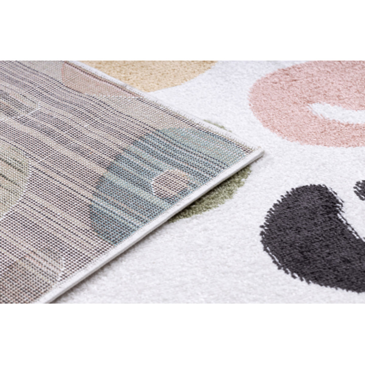 Ravviva la cameretta dei bambini con il tappeto rettangolare FUN Spots dal motivo di macchie colorate. Il delicato colore crema crea una base neutra, mentre il vivace motivo stimola l'immaginazione e il gioco creativo dei bambini. Il tappeto si adatta perfettamente a qualsiasi interno e dona alla stanza un aspetto giocoso e accogliente. È realizzato in polipropilene Soft Friese di alta qualità, morbido, resistente e piacevole al tatto. Lo spessore di circa 8 mm offre una superficie confortevole per giocare e rilassarsi. La densità del pelo di 160.000 punti/m² e il peso di circa 1,80 kg/m² garantiscono stabilità e lunga durata. Un complemento perfetto per la cameretta, la sala giochi o l'angolo relax dei bambini.