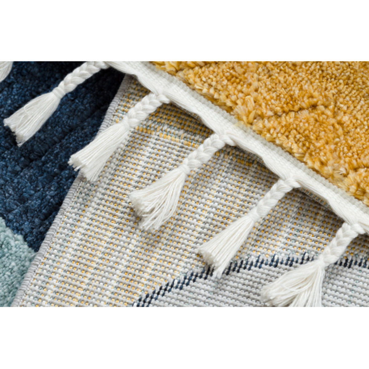 Il tappeto ha una superficie strutturale con frange, che supporta la percezione tattile e visiva e stimola la creatività e la curiosità dei bambini. Grazie al filato di poliestere di qualità, il tappeto è morbido, leggero e facile da mantenere. Lo spessore del tappeto varia tra 8 mm e 16 mm, offrendo comfort sia durante il gioco che il riposo. Il peso dipende dal motivo e varia tra 2,0–2,50 kg/m².