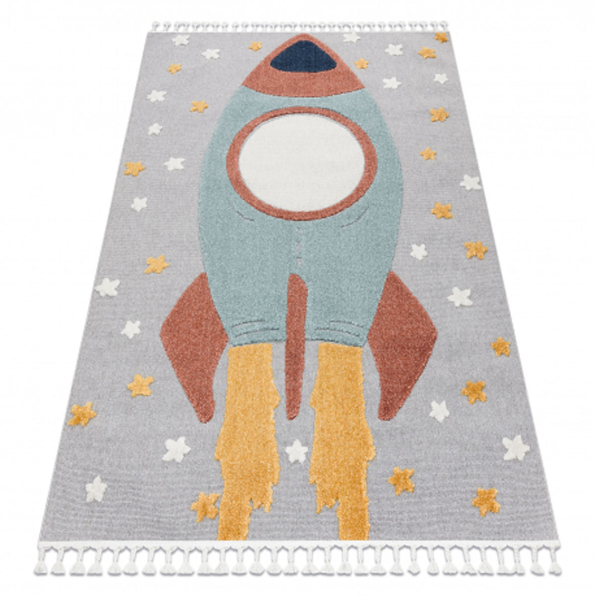 Banaby.it » Mobili per bambini / Tappeti / Tappeti componibili / Tappeto YOYO GD55 grigio / blu - stelle, razzo per bambini, strutturale, sensoriale Frange